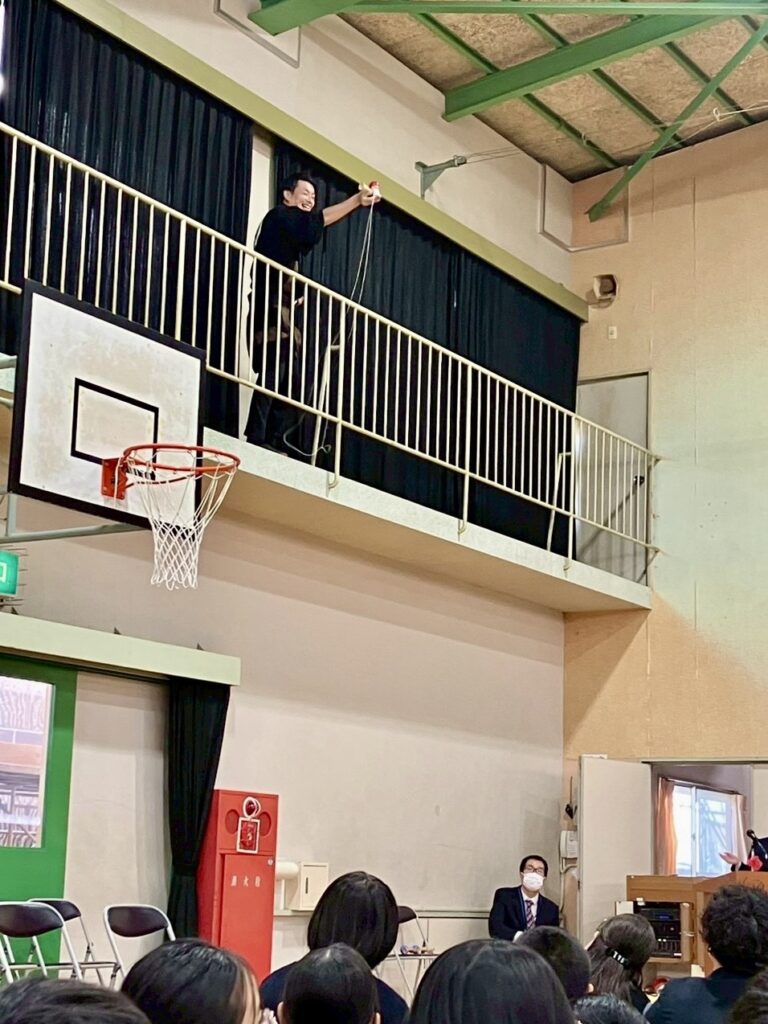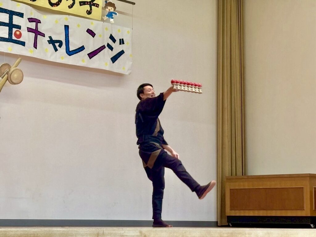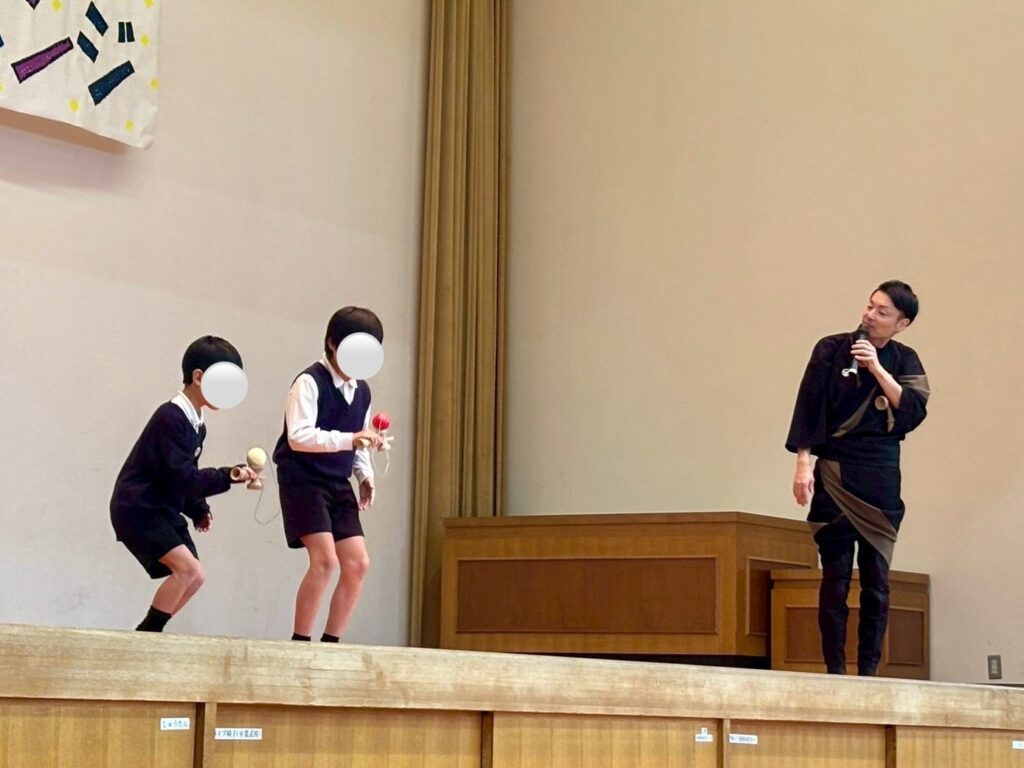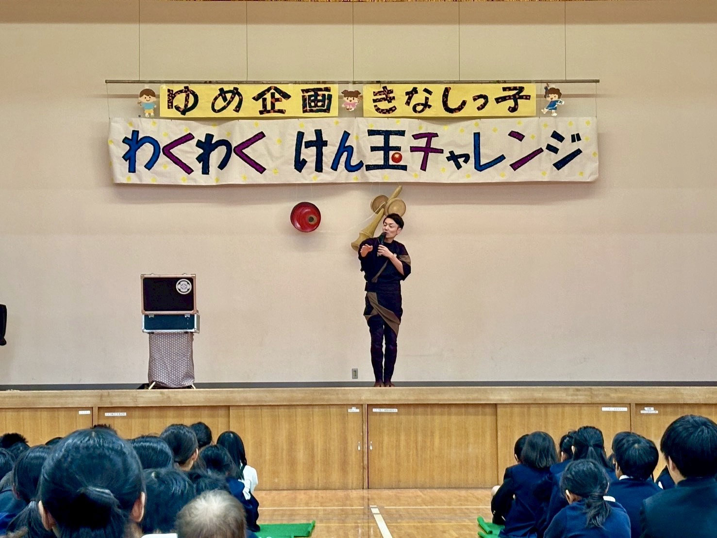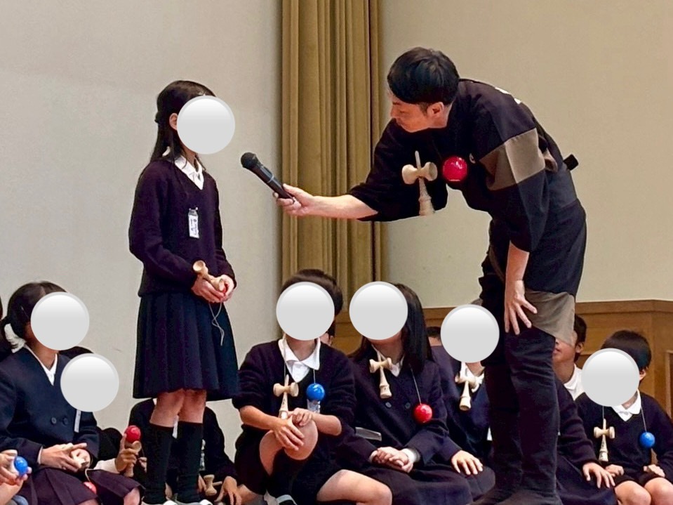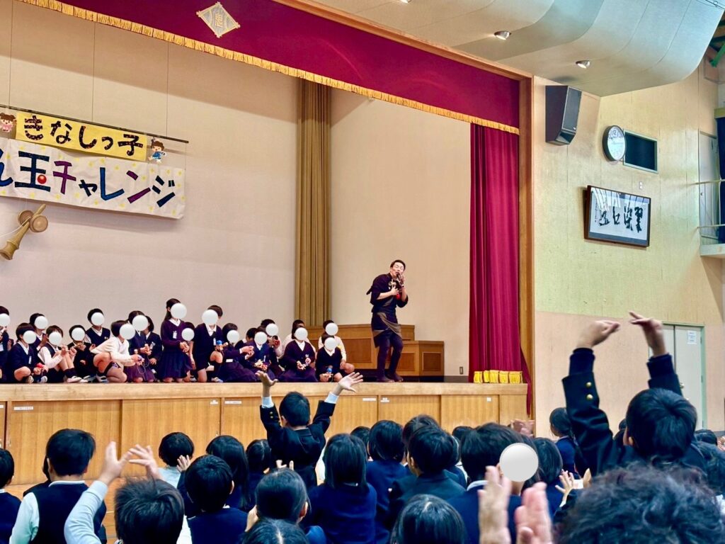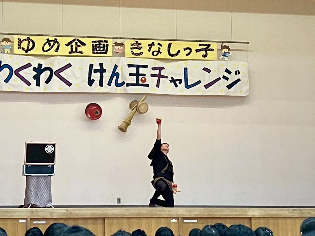 けん玉師・伊藤祐介さん来校! ゆめ企画「きなしっ子 わくわく けん玉チャレンジ」開催