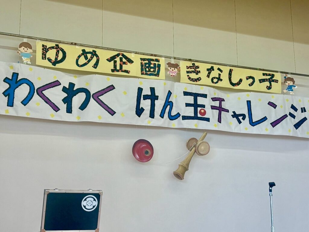 学習参観の2校時目に、鬼無の子どもたちがずっと楽しみにしていたゆめ企画「きなしっ子 わくわく けん玉チャレンジ」が開催されました!