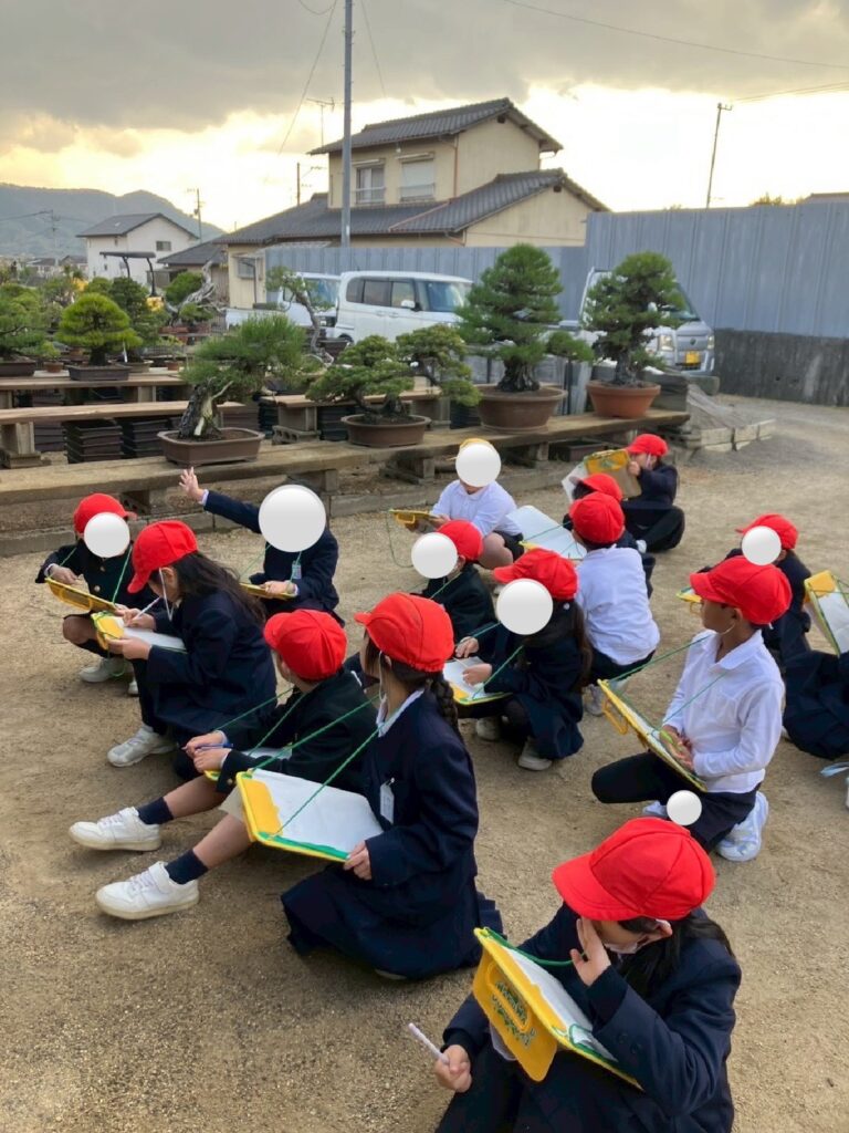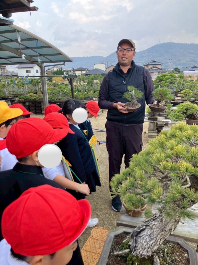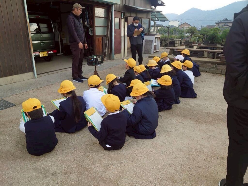 1組はコミュニティセンター⇒北谷養盛園、2組は北谷養盛園⇒コミュニティセンターの順番で回り、コミュニティセンターの施設の説明や盆栽のお仕事の様子を見学しました。