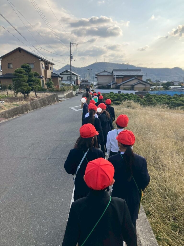 帰り道も白線の内側をしっかり歩くよう声をかけながら、お友達と楽しくおしゃべりしつつ学校へ戻りました!