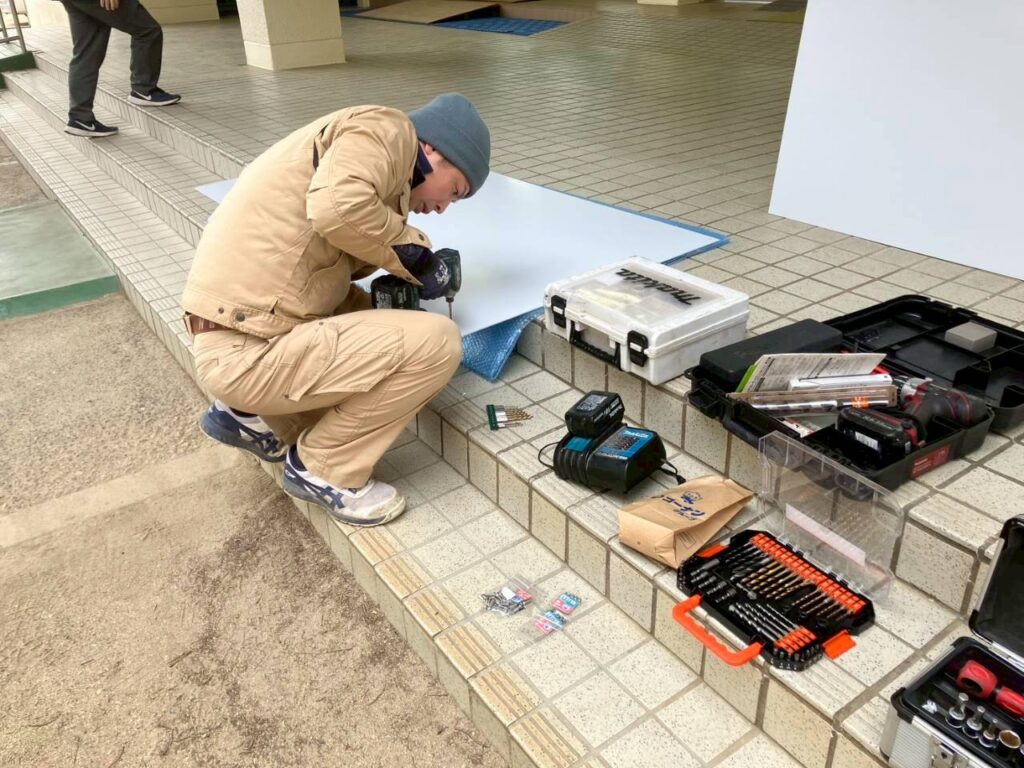 看板が割れないよう慎重に取り外しながら、周りの清掃まで丁寧に行ってくださいました。