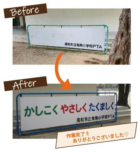 こちらは、昔のPTAの皆さまが設置してくださった看板です。